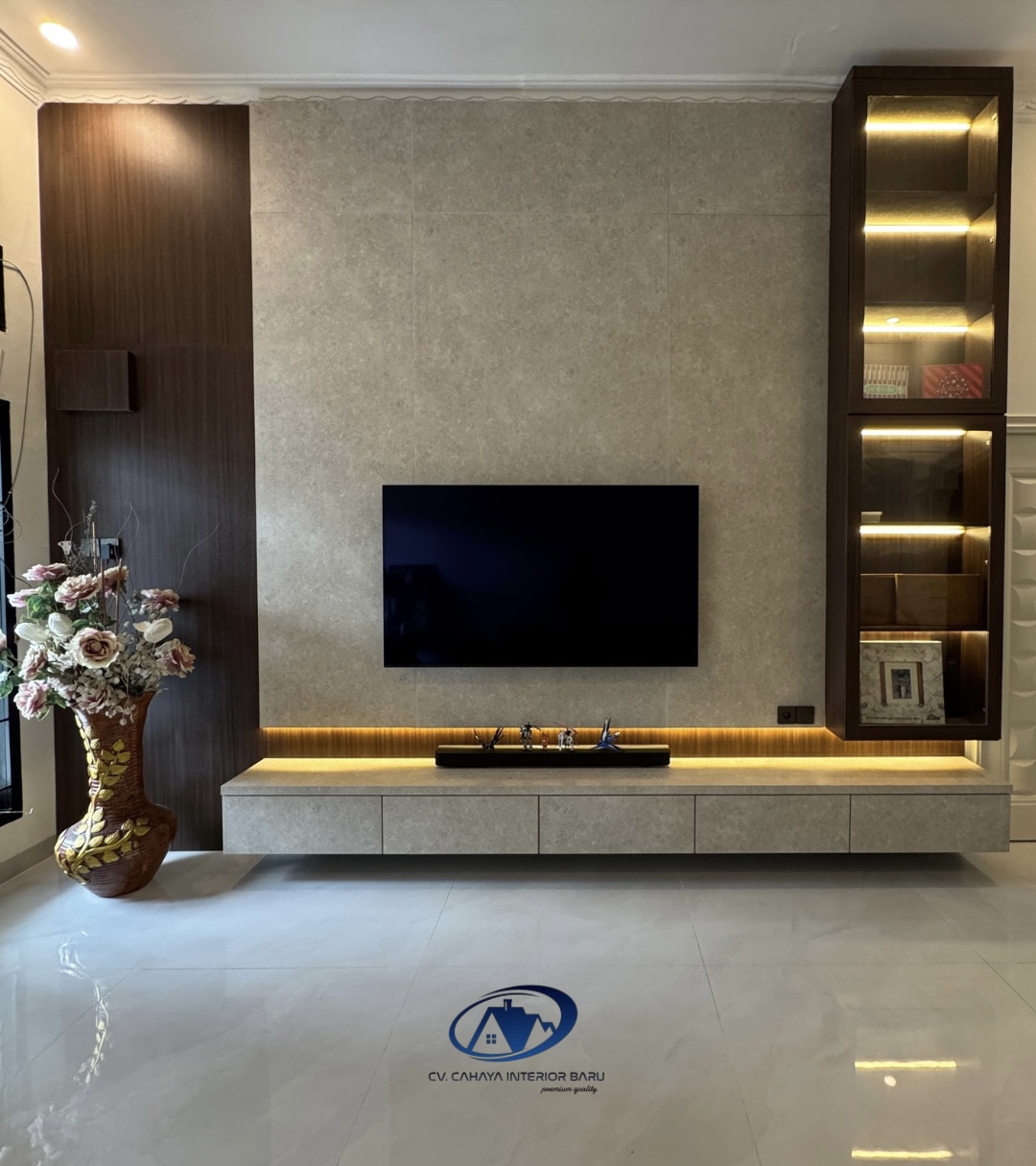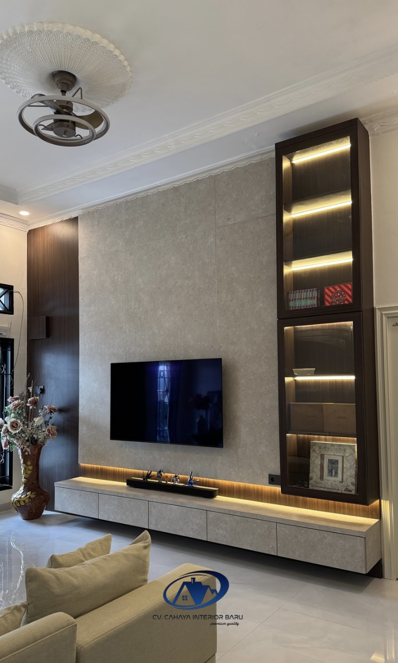 Backdrop TV dengan Finishing HPL Premium